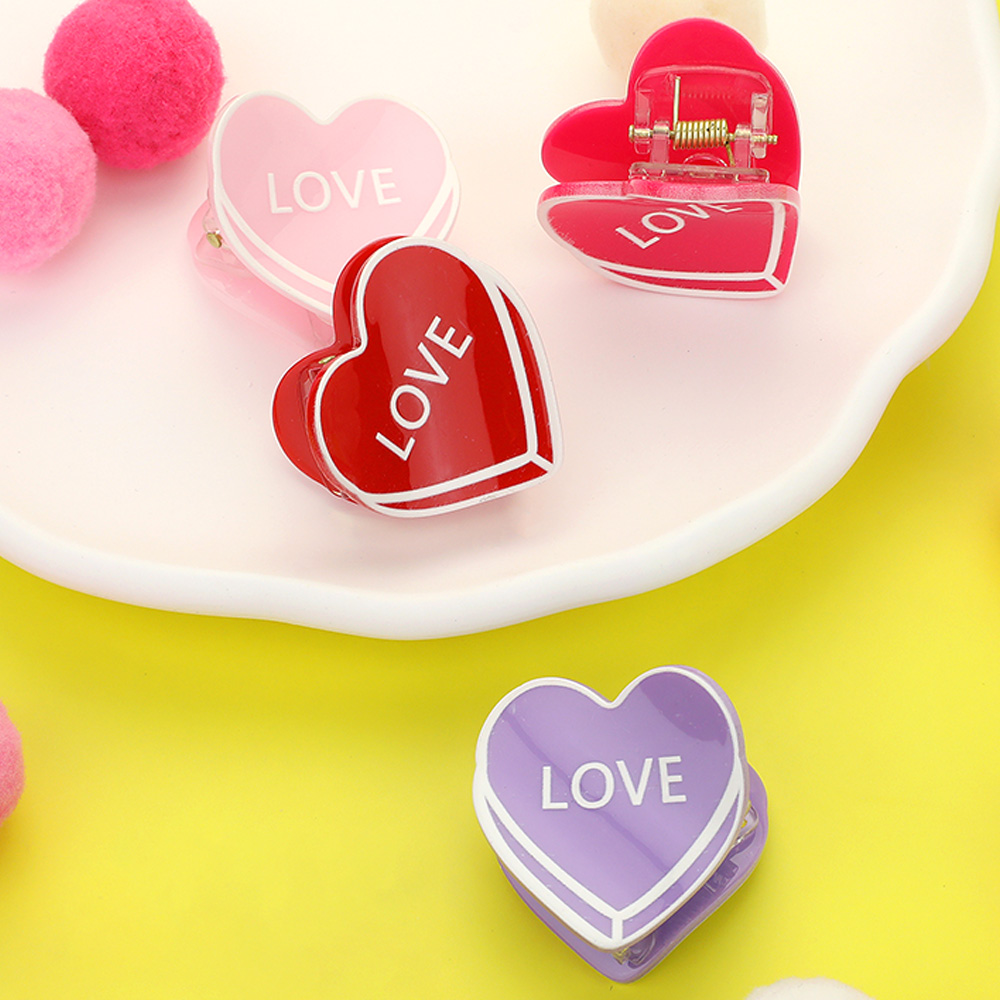 4PCS - LOVE Message Acetate Heart Hair Claw Clips