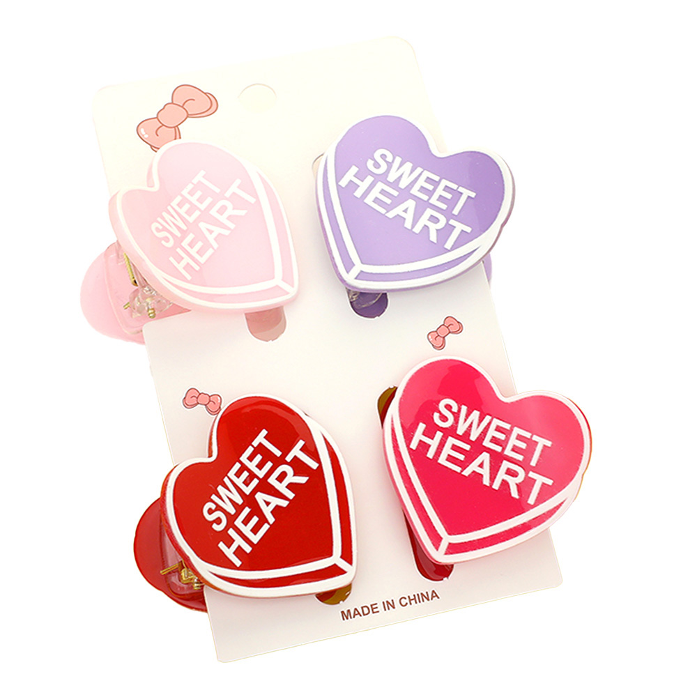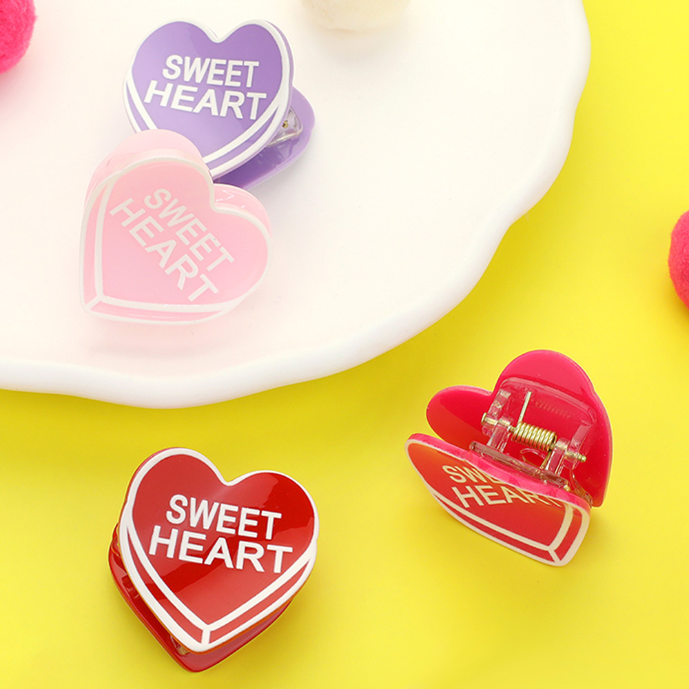 4PCS - SWEET HEART Message Acetate Heart Hair Claw Clips