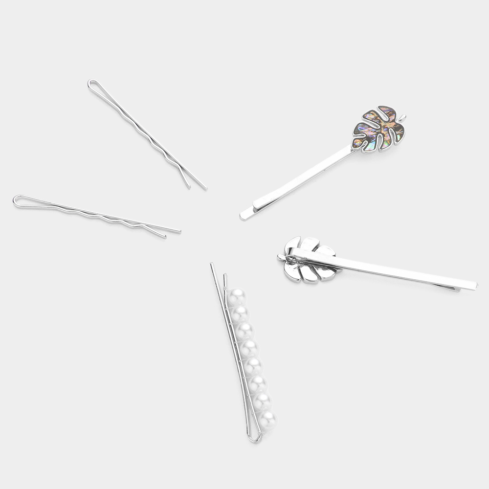 5PCS - Abalone Tropical Leaf Pearl Bobby Pin Hair Clips