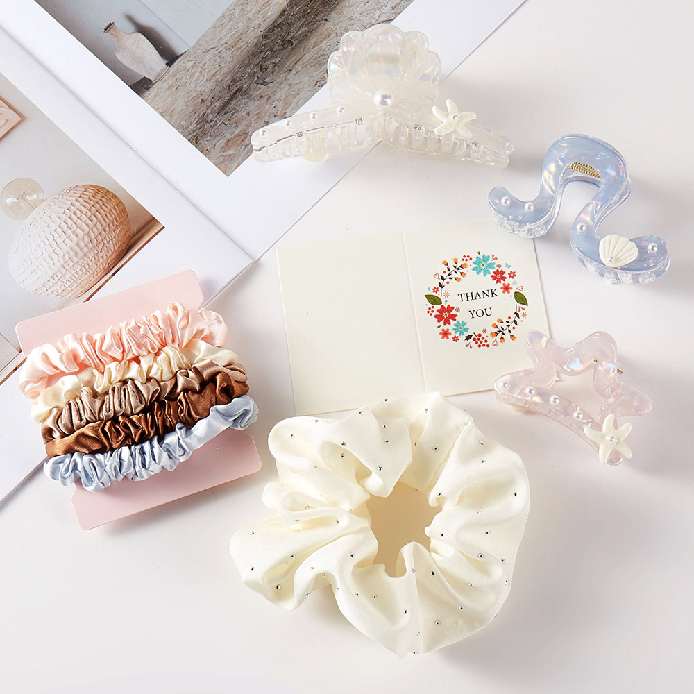 9PCS - Pearl Embellished Cellulose Acetate Shell Starfish Pointed Hair Claw Clips Stretchable Hairbands Set