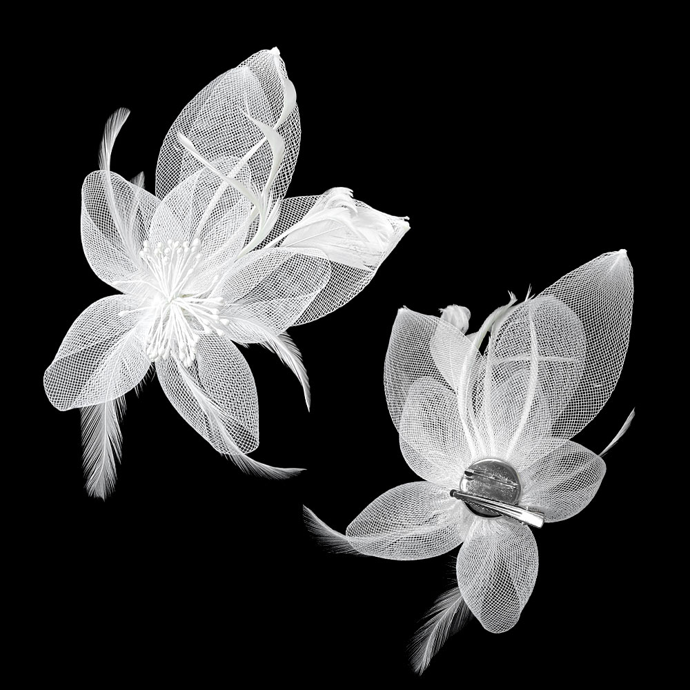 Feather & Mesh Flower Hair Pinch Clip / Brooch