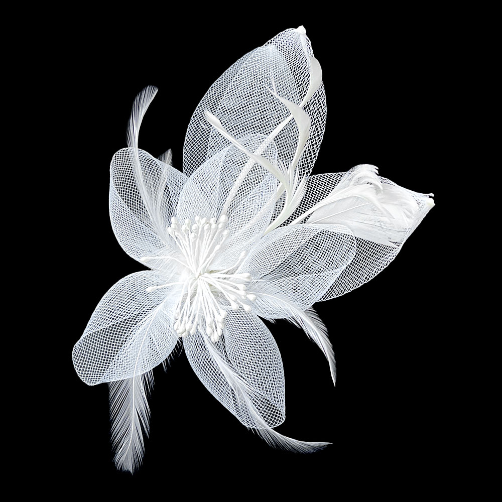 Feather Mesh Flower Hair Pinch Clip Brooch