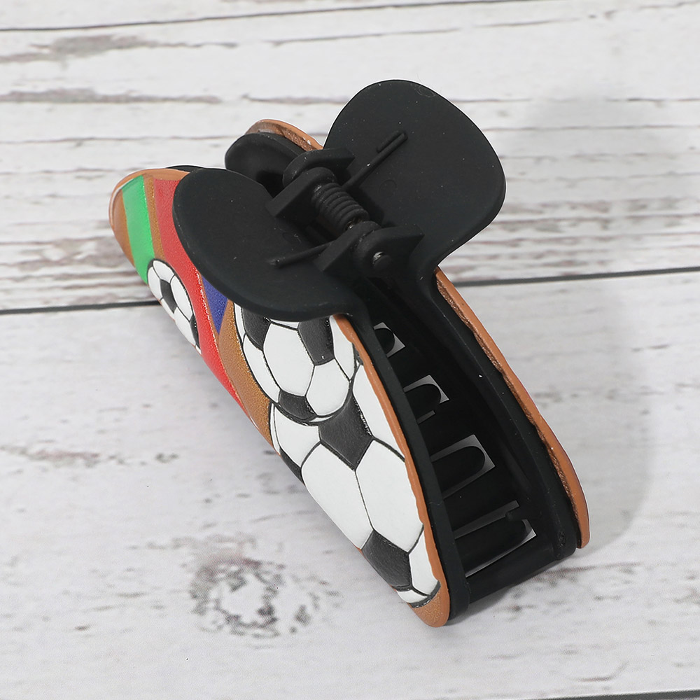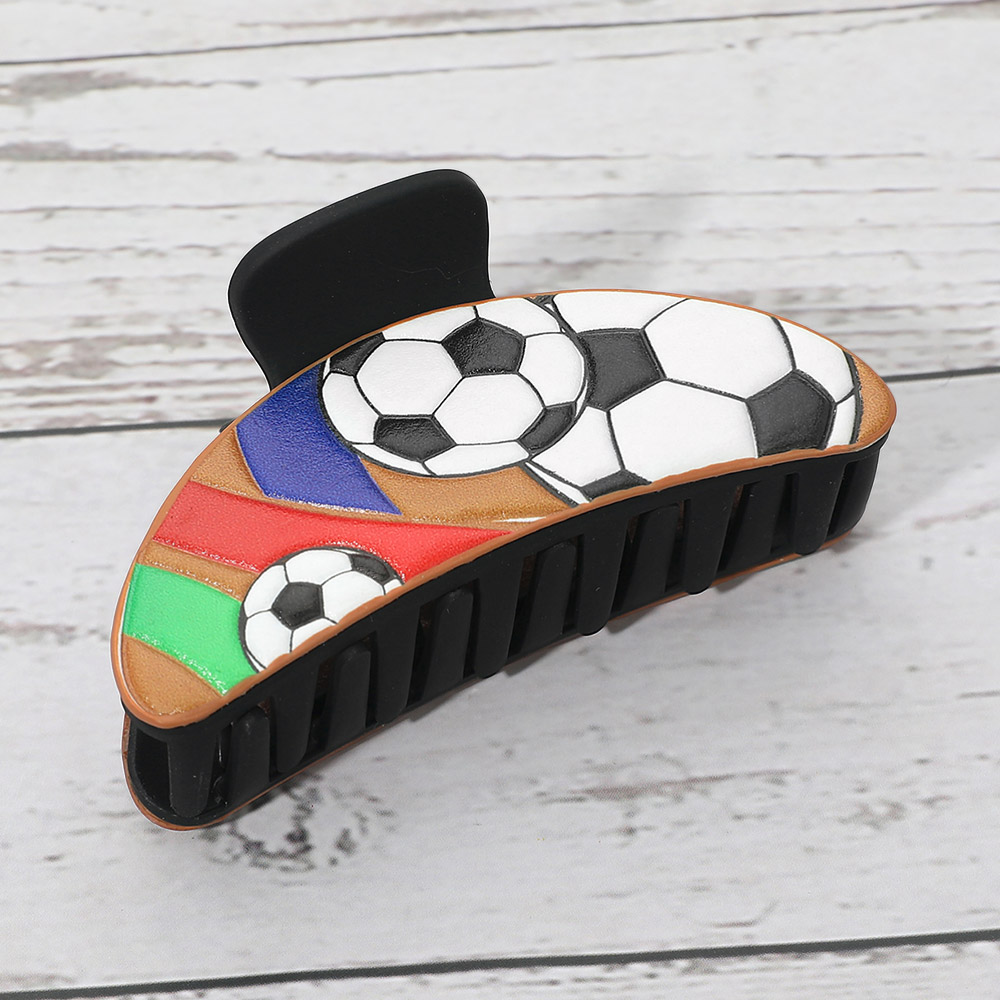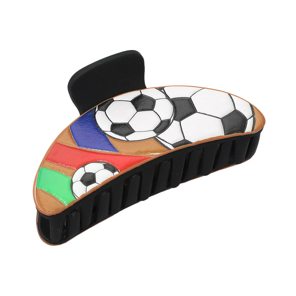 Details • Size : 3.5" X 1.5" • This soccer theme hair claw clip features a bold sports-inspired design that adds playful personality to everyday hairstyles. Designed for secure grip and easy styling, it’s perfect for game day outfits, team spirit looks, casual wear, or gift shops. A fun accessory for fans, athletes, and trend-driven hair collections.