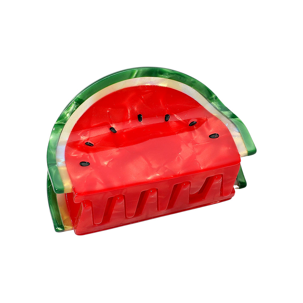• Bring a refreshing touch to your hairstyle with this watermelon slice hair claw clip. Designed for a secure grip, this playful fruit-inspired accessory adds a unique and cheerful vibe to your everyday look.