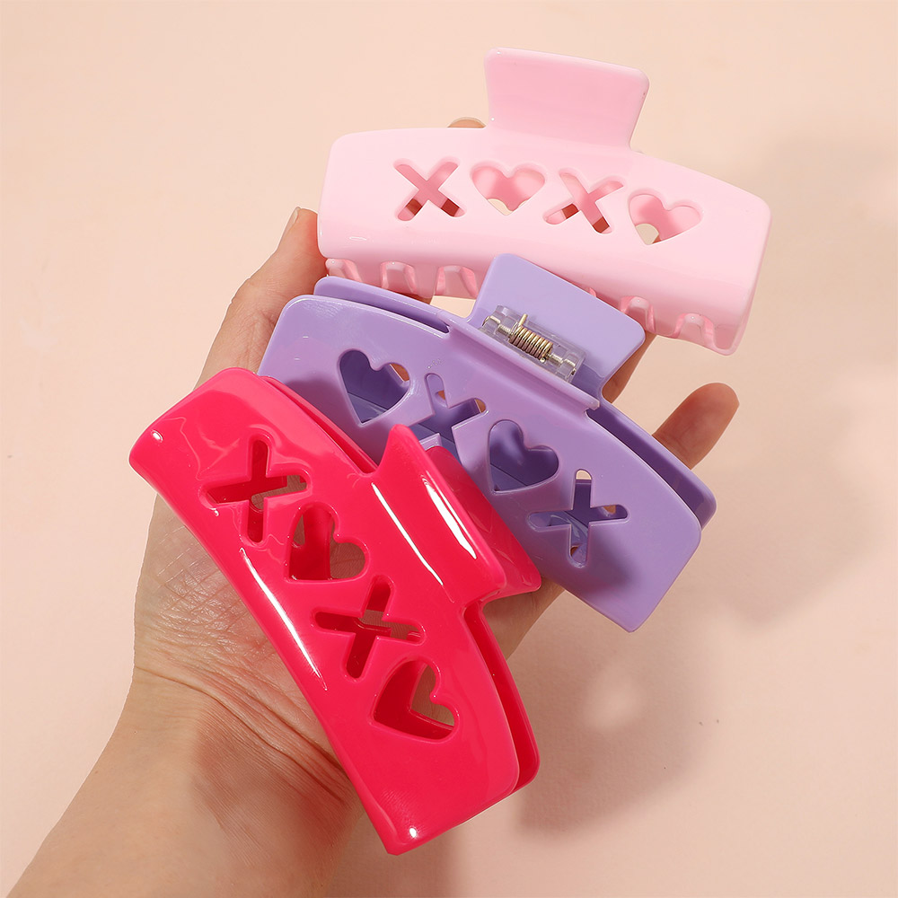 Details • Size : 4" X 2" • Stylish hair claw clip featuring playful XO and heart cutout details for a trendy, everyday look. Designed to secure hair comfortably while adding a fun, modern accent. Perfect for casual styling, gifting, or boutique collections seeking eye-catching hair accessories.