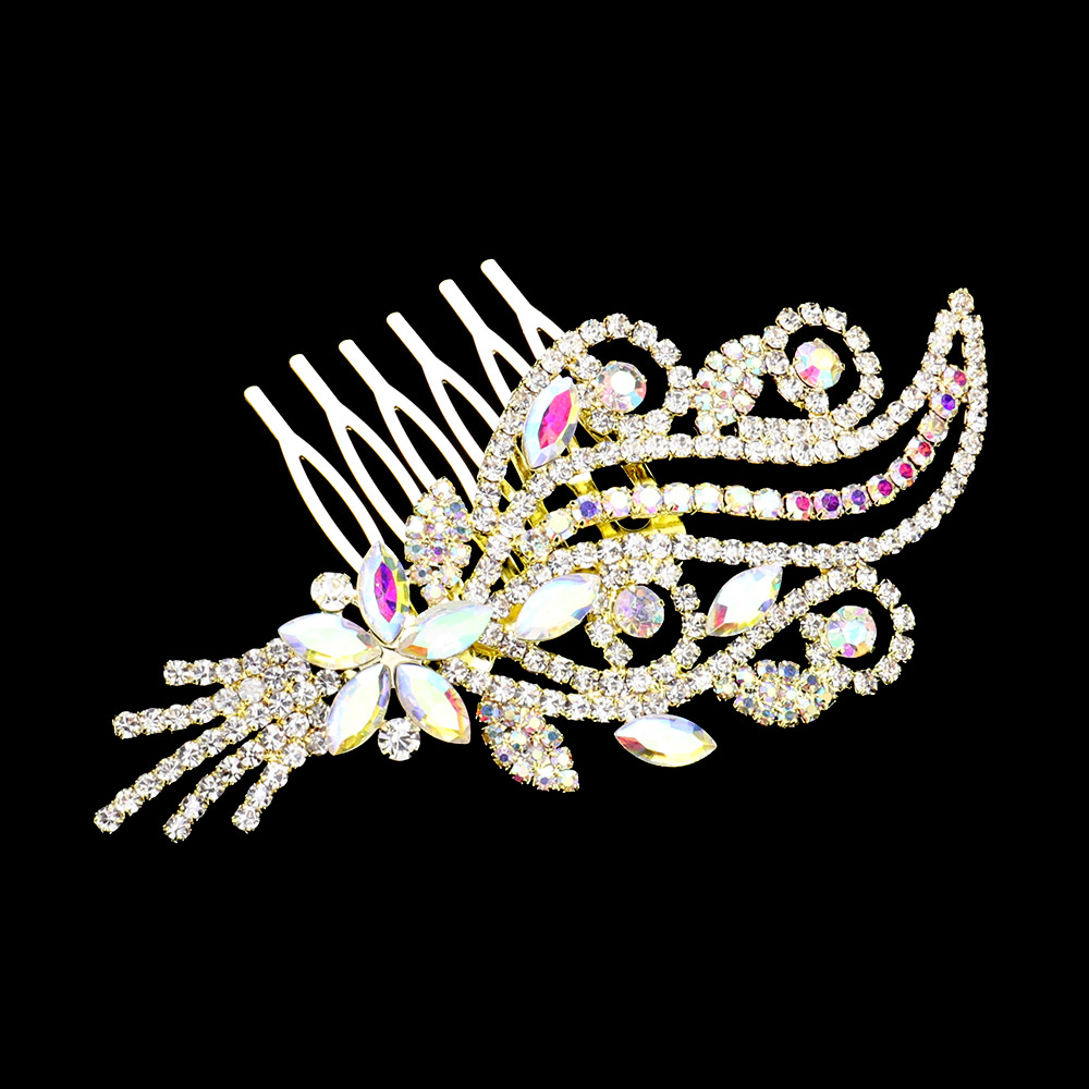 Flower Stone Cluster Pointed Rhinestone Paved Hair Comb