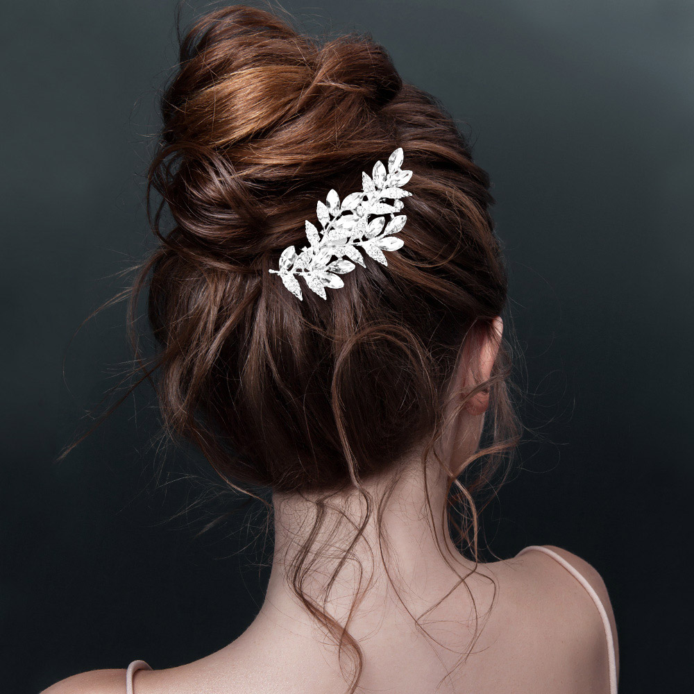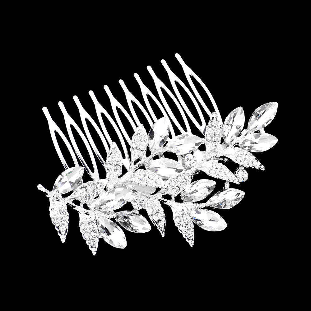 Marquise Stone Accented Leaf Cluster Hair Comb