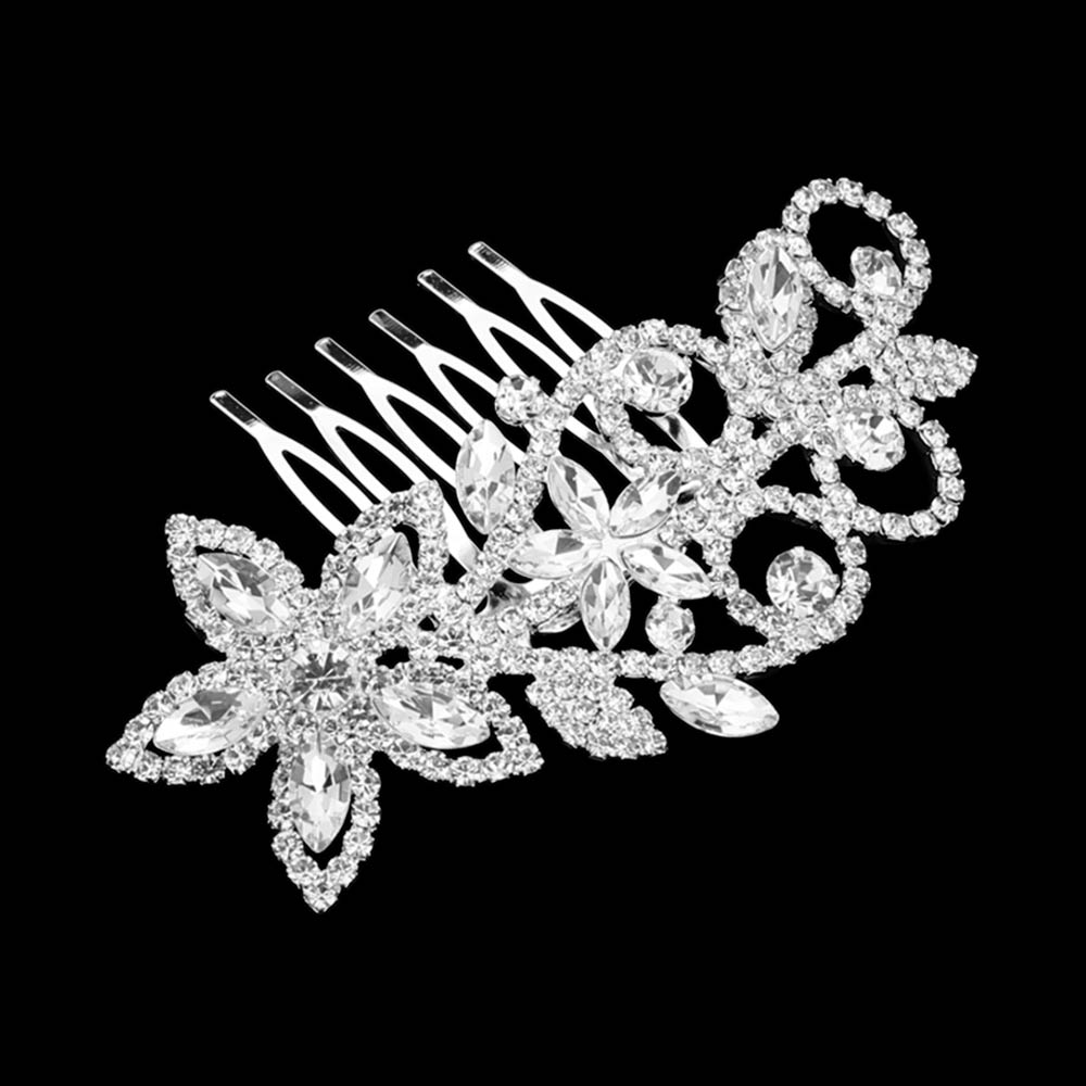 Marquise Stone Cluster Rhinestone Pave Floral Hair Comb