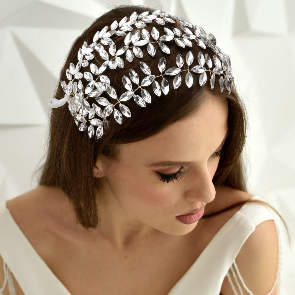 CZ Stone Leaves Vine Bun Wrap Headpiece