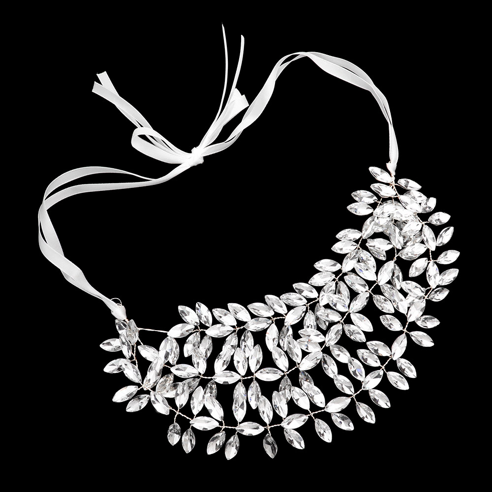 Marquise Crystal Floral Rhinestone Sash Ribbon Wedding Belt / Headband