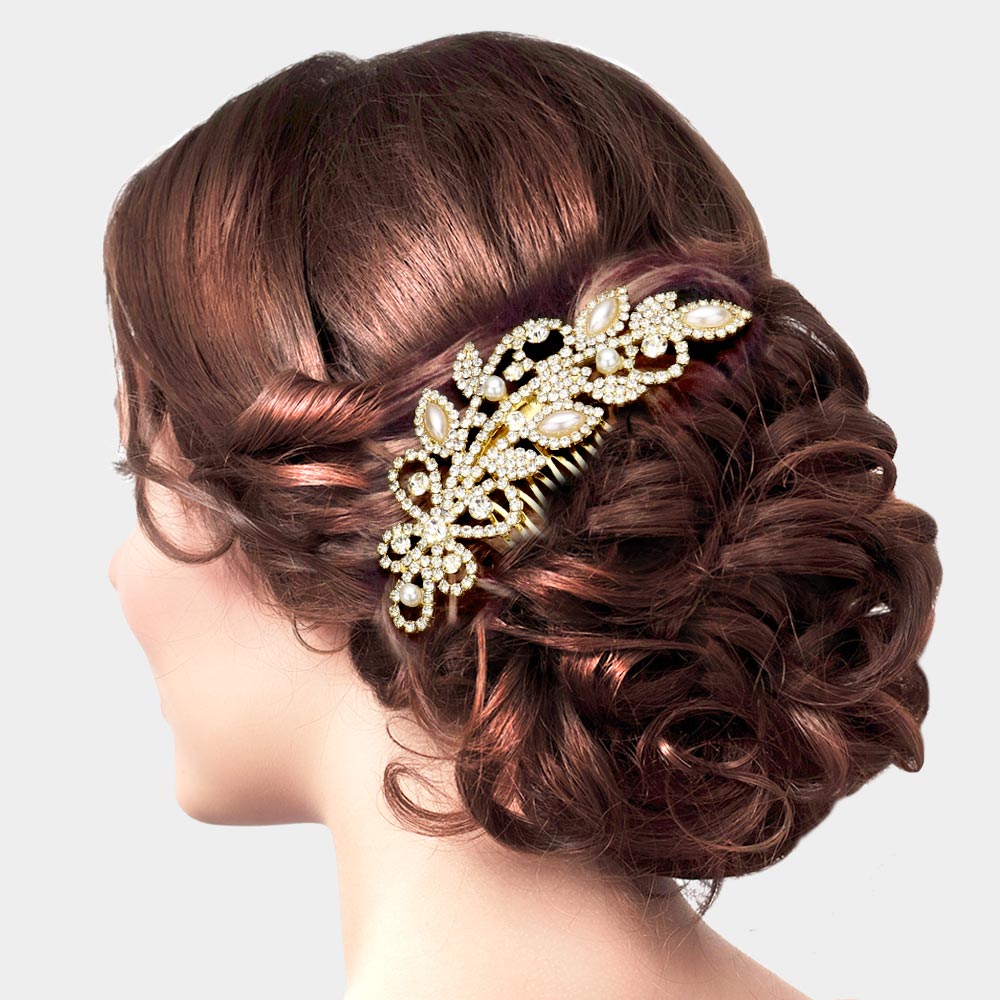 Pearl Rhinestone Sprout Leaf Hair Comb