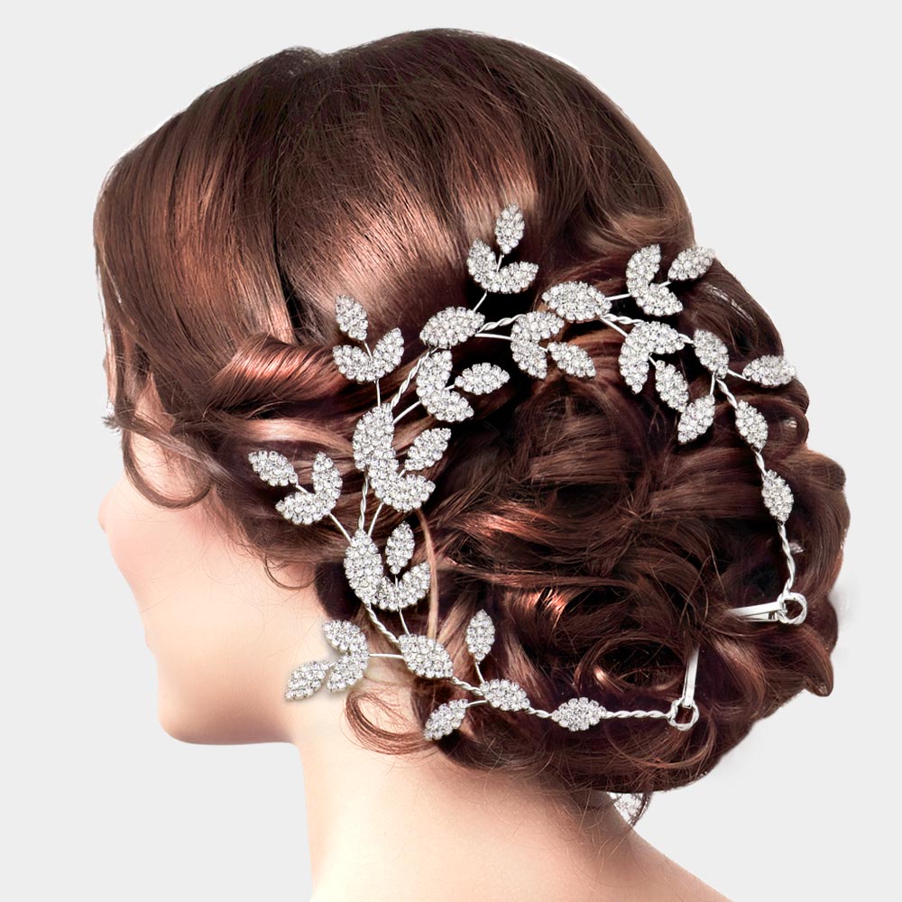 Rhinestone Embellished Leaf Cluster Vine Bun Wrap Headpiece