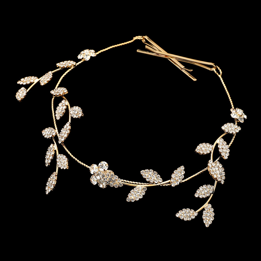 Rhinestone Paved Floral Leaf Vine Bun Wrap Headpiece