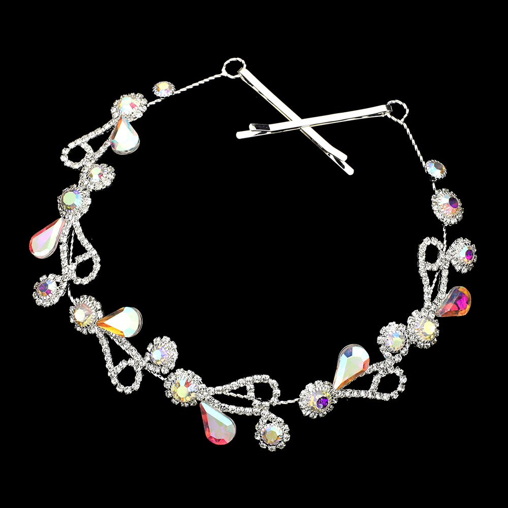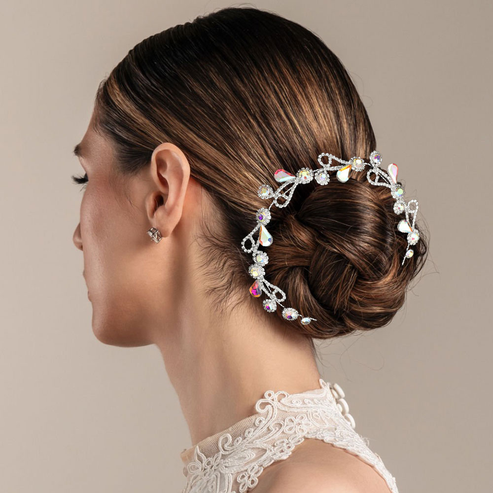 Round Teardrop Stone Embellished Bun Wrap Headpiece