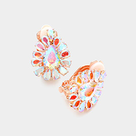 Pave Trim Crystal Teardrop Evening Clip On Earrings