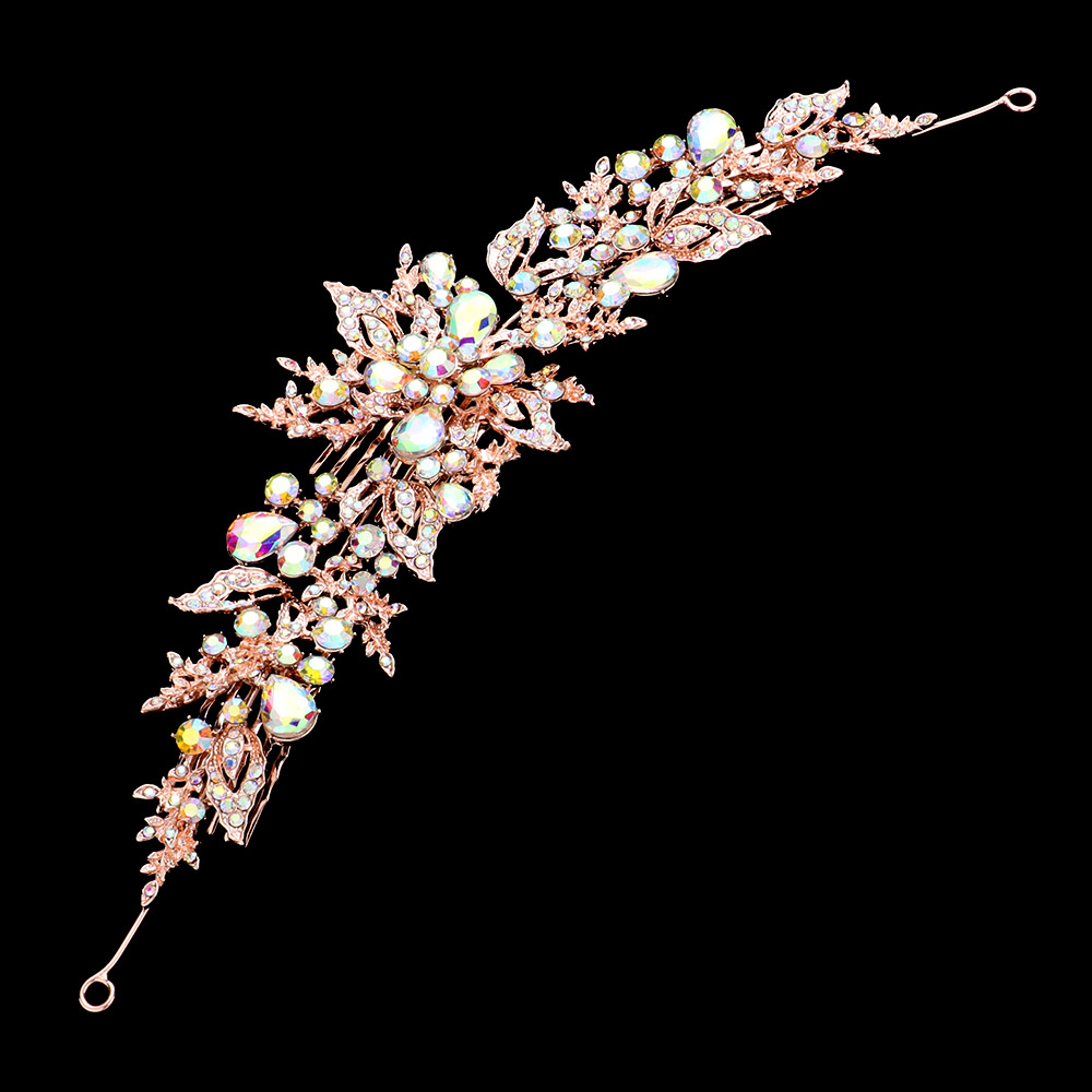 Rhinestone Paved Flower Leaf Pointed Hair Comb