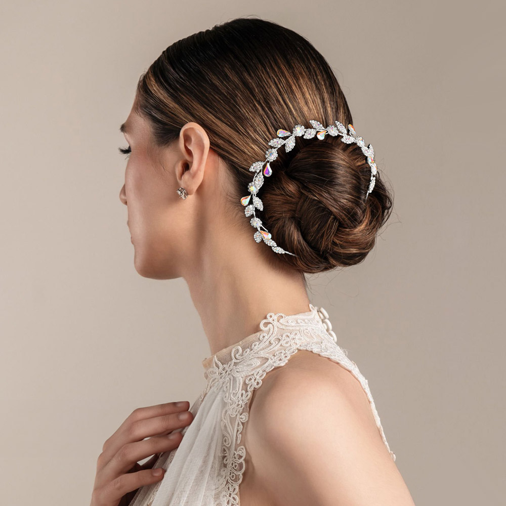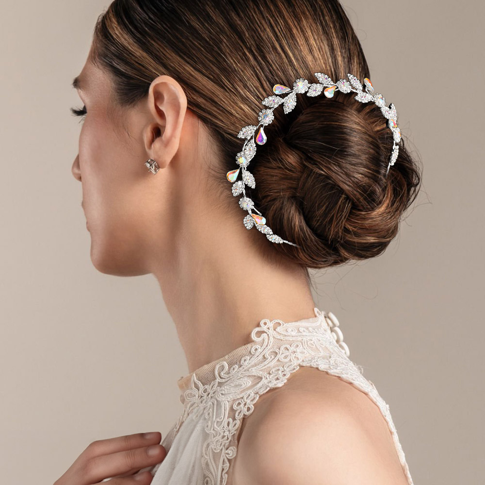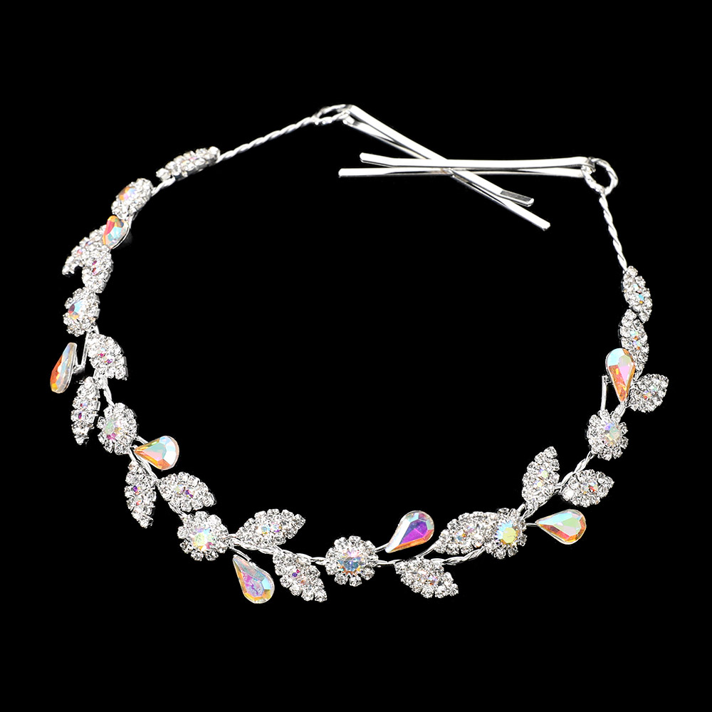 Stone Paved Flower Teardrop Stone Cluster Leaf Vine Wrap Headpiece