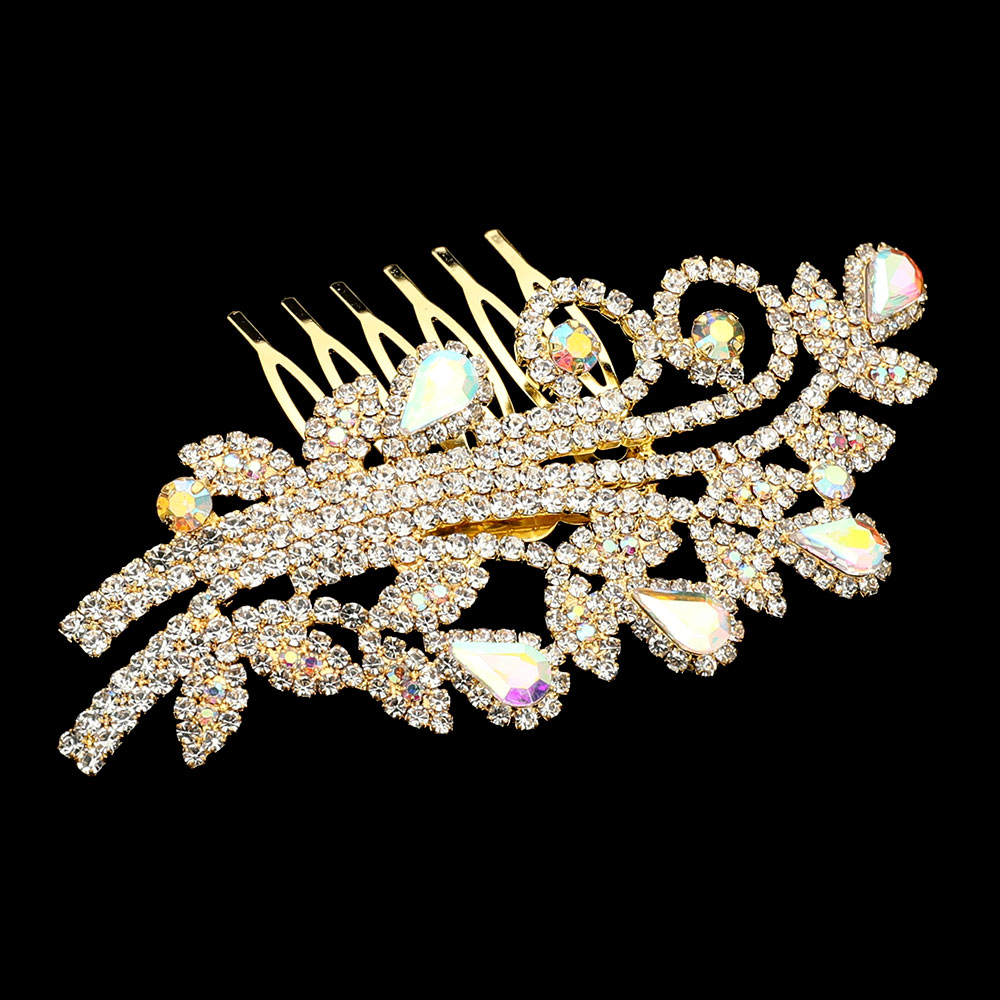 Teardrop Stone Cluster Rhinestone Paved Branch Hair Comb
