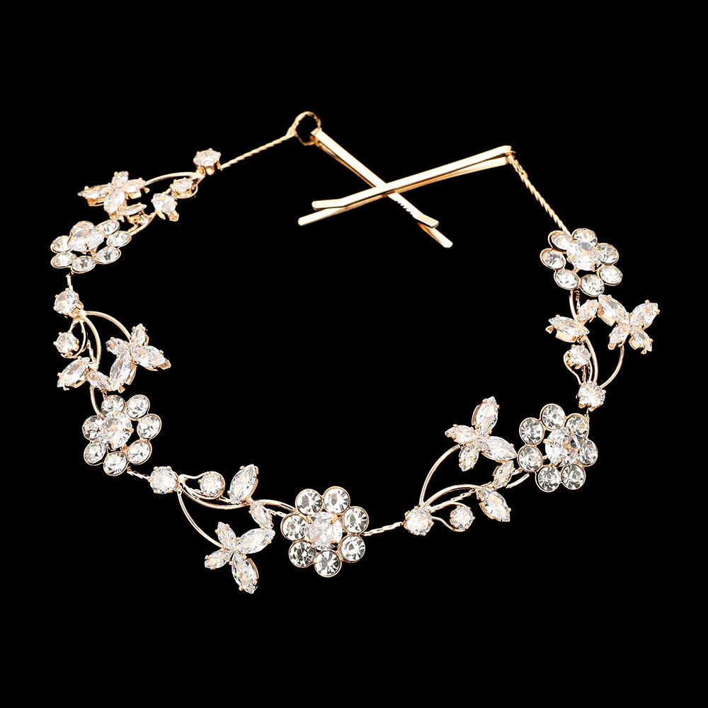 Details • Size : 11" X 1" • Adorn your hairstyle with this vintage-inspired floral crystal hair vine. Featuring intricate blossoms and delicate detailing, it gracefully accents updos and bridal looks. Ideal for weddings and formal occasions, this elegant piece adds timeless charm and refined sparkle to any ensemble. • CZ Cubic Zirconia • Lead and Nickel Compliant