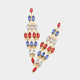 American USA Flag Rhinestone Paved Heart Dangle Earrings