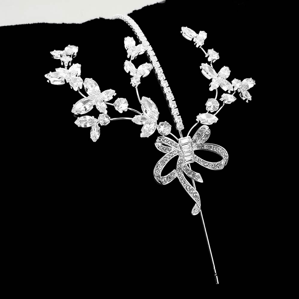 Details • Size : 2.8" H • Elegant floral hair vine headpiece designed with sparkling crystal accents and delicate branch details for a romantic look. Perfect for weddings, bridal styling, proms, and formal events. Flexible design allows easy shaping for updos, half-up styles, or loose hairstyles.