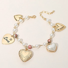 3Pairs - Pearl Embellished Heart MOM Earrings