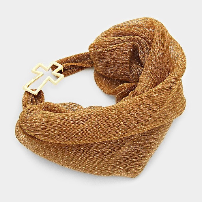 Cross & metallic mesh net stretch headband / scrunchie / wrap bracelet