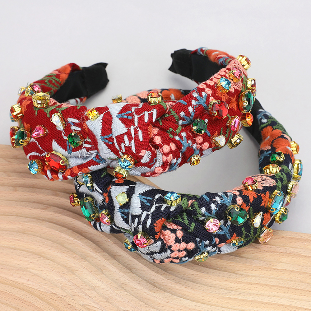 Flower Embroidered Stone Cluster Embellished Knot Headband Flower Embroidered Stone Cluster Embellished Knot Headband Flower Embroidered Stone Cluster Embellished Knot Headband