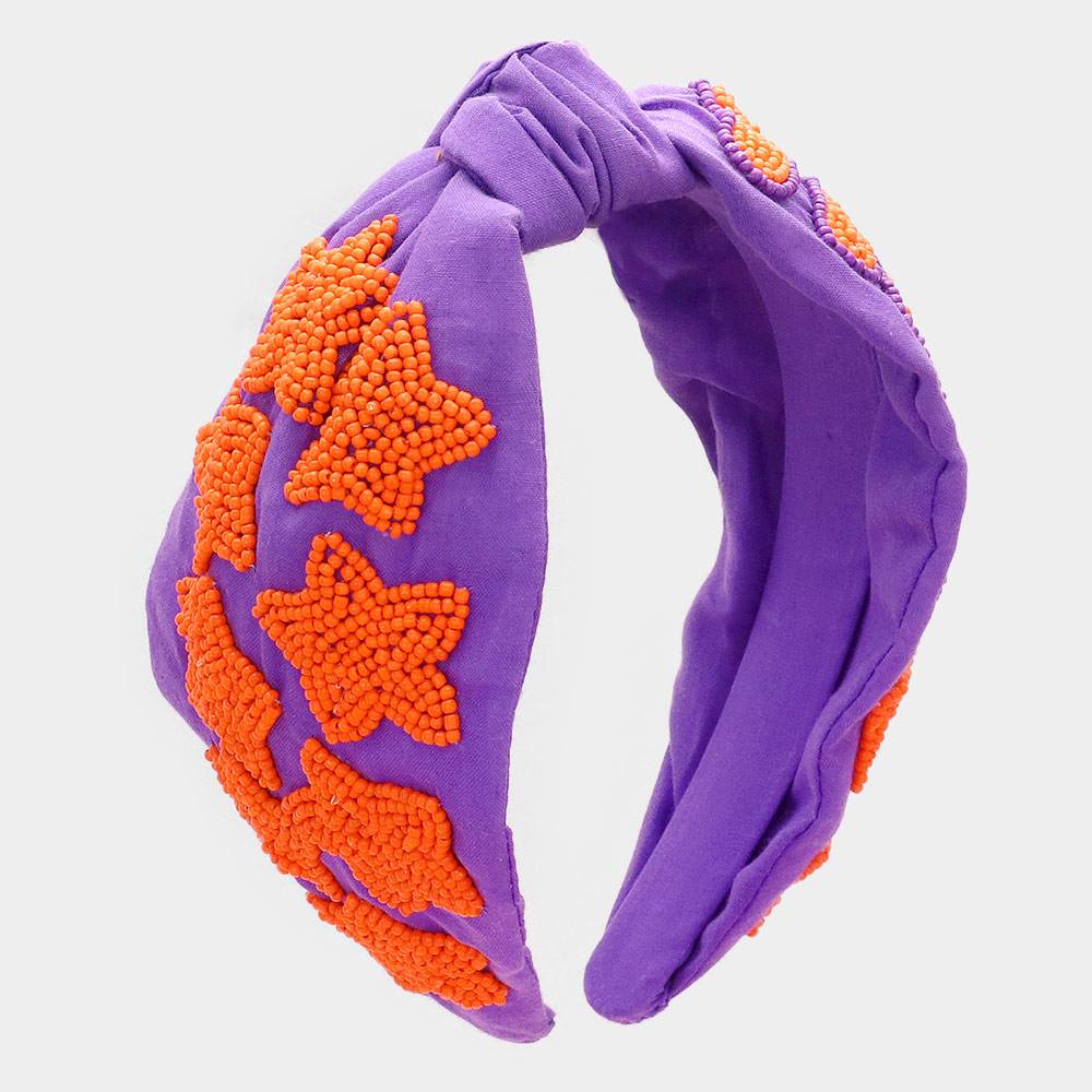 Game Day Seed Beaded ACE Message Star Knot Burnout Headband
