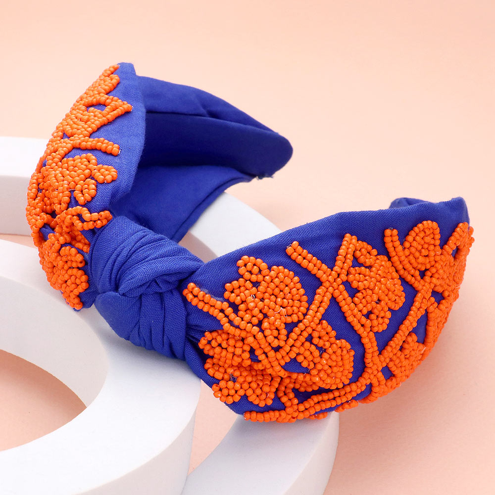 Game Day Seed Beaded Paw Knot Burnout Headband