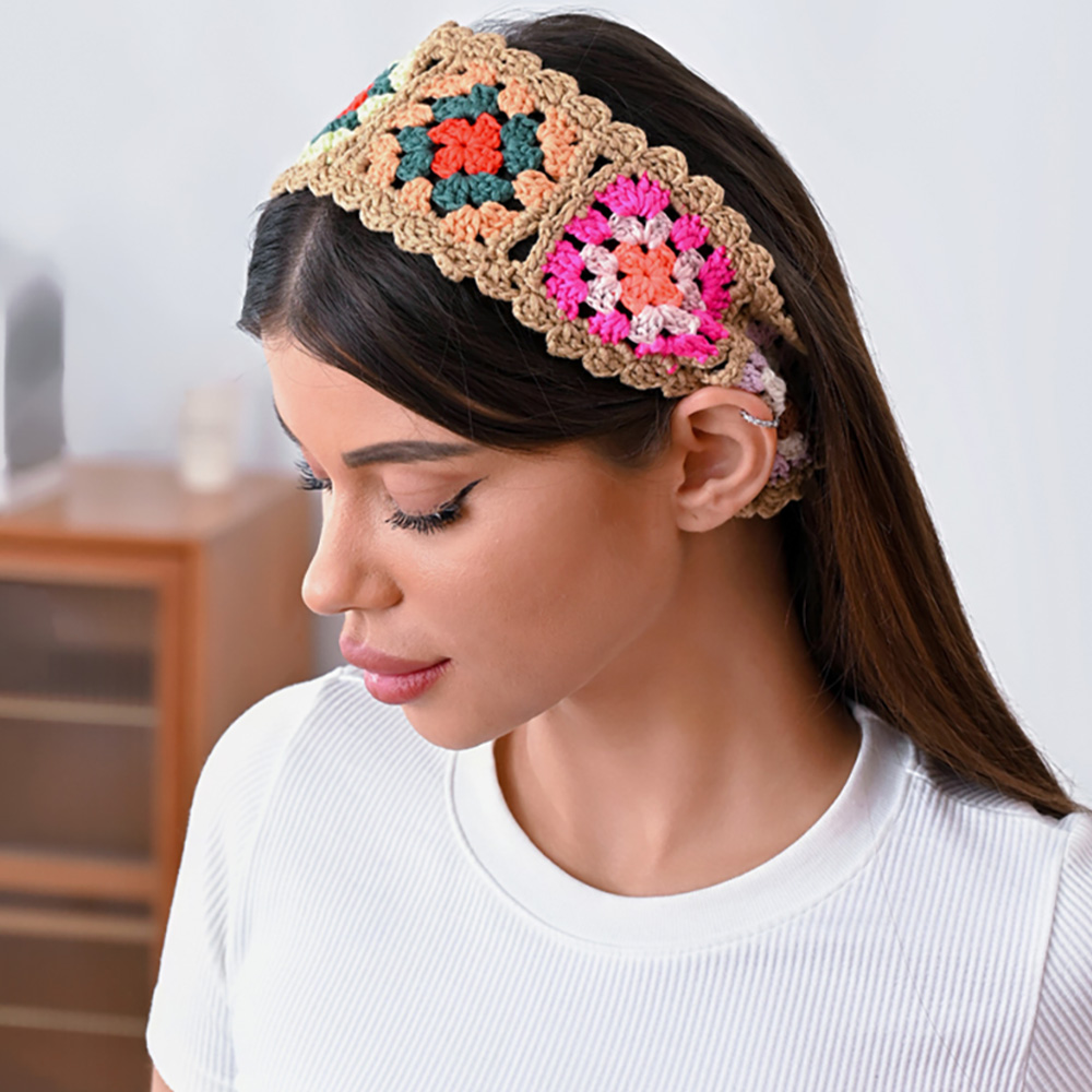 Details • Size : 17" X 3.5" • Material : 100% Cotton • Handmade crochet design for a trendy boho aesthetic • Soft and stretchable for a secure, comfortable fit • Lightweight and breathable for all-day wear • Ideal for casual wear, festivals, beach outings, or everyday styling • A perfect accessory to enhance any outfit