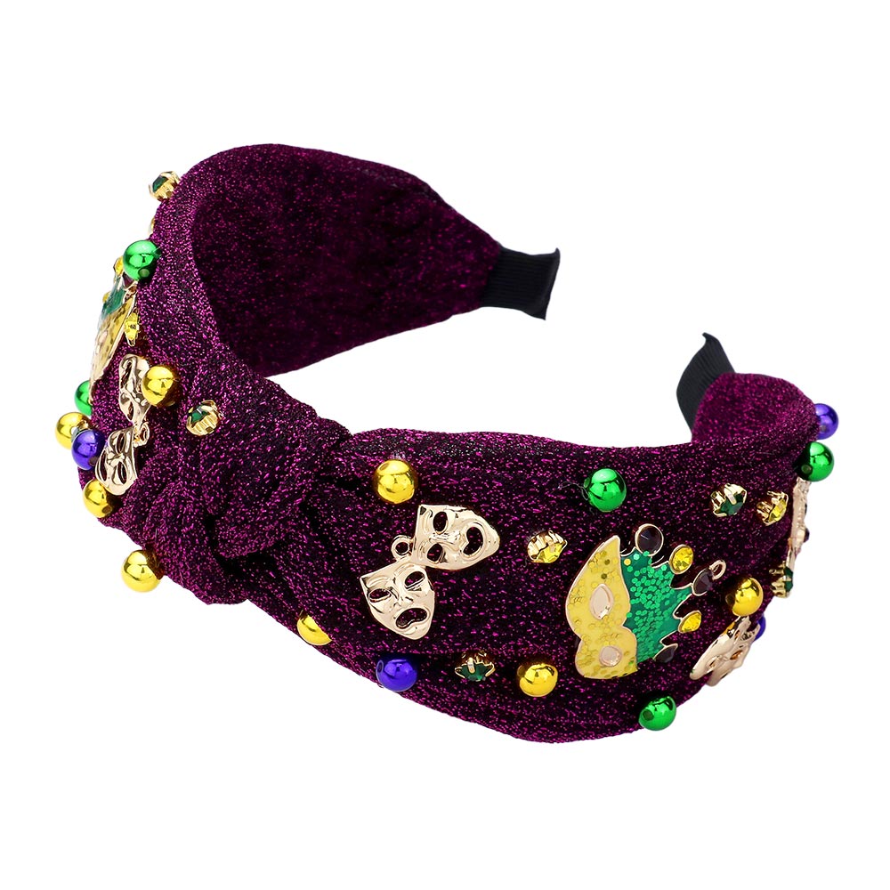 Mardi Gras Mask Crown Sparkle Knot Headband
