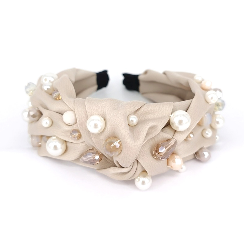 Pearl Multi Bead Embellished Knot Burnout Headband