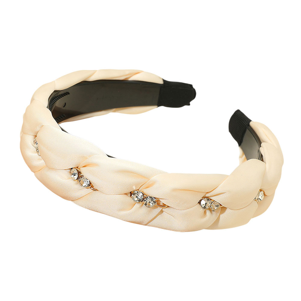 Details • Size : 1.2" H • Add timeless sophistication to your look with this braided headband featuring sparkling crystal accents. Its elegant design combines modern charm and refined detail, making it the perfect finishing touch for casual days or special occasions.