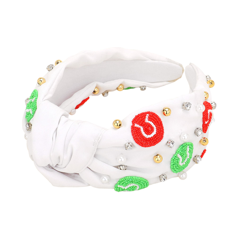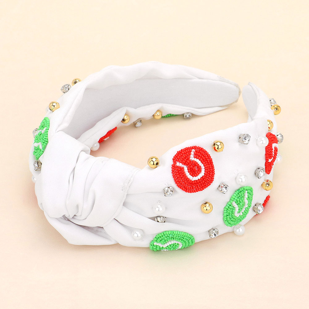 Tennis Ball Seed Beaded Pearl Metal Ball Stone Cluster Embellished Knot Headband