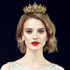 Marquise Stone Accented Leaf Detail Crown Queen Tiara Marquise Stone Accented Leaf Detail Crown Queen Tiara
