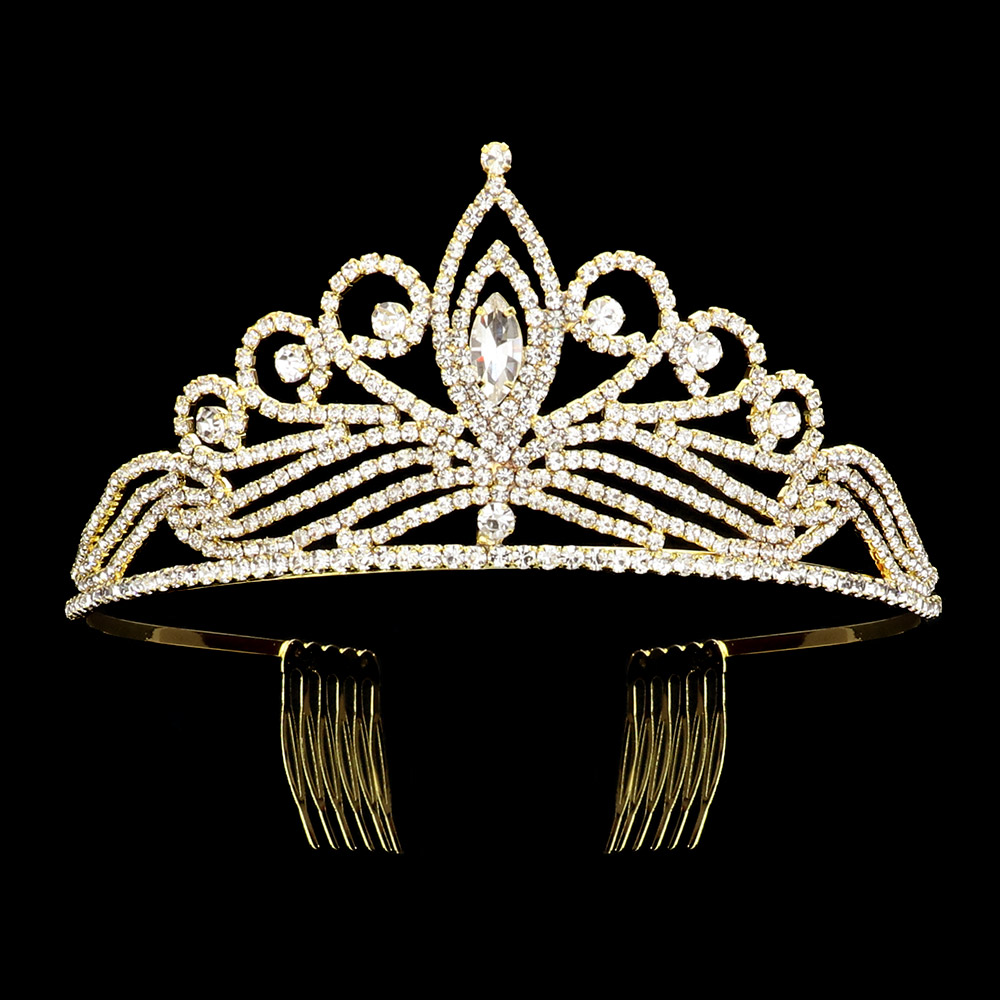 Marquise Stone Accented Rhinestone Paved Princess Tiara