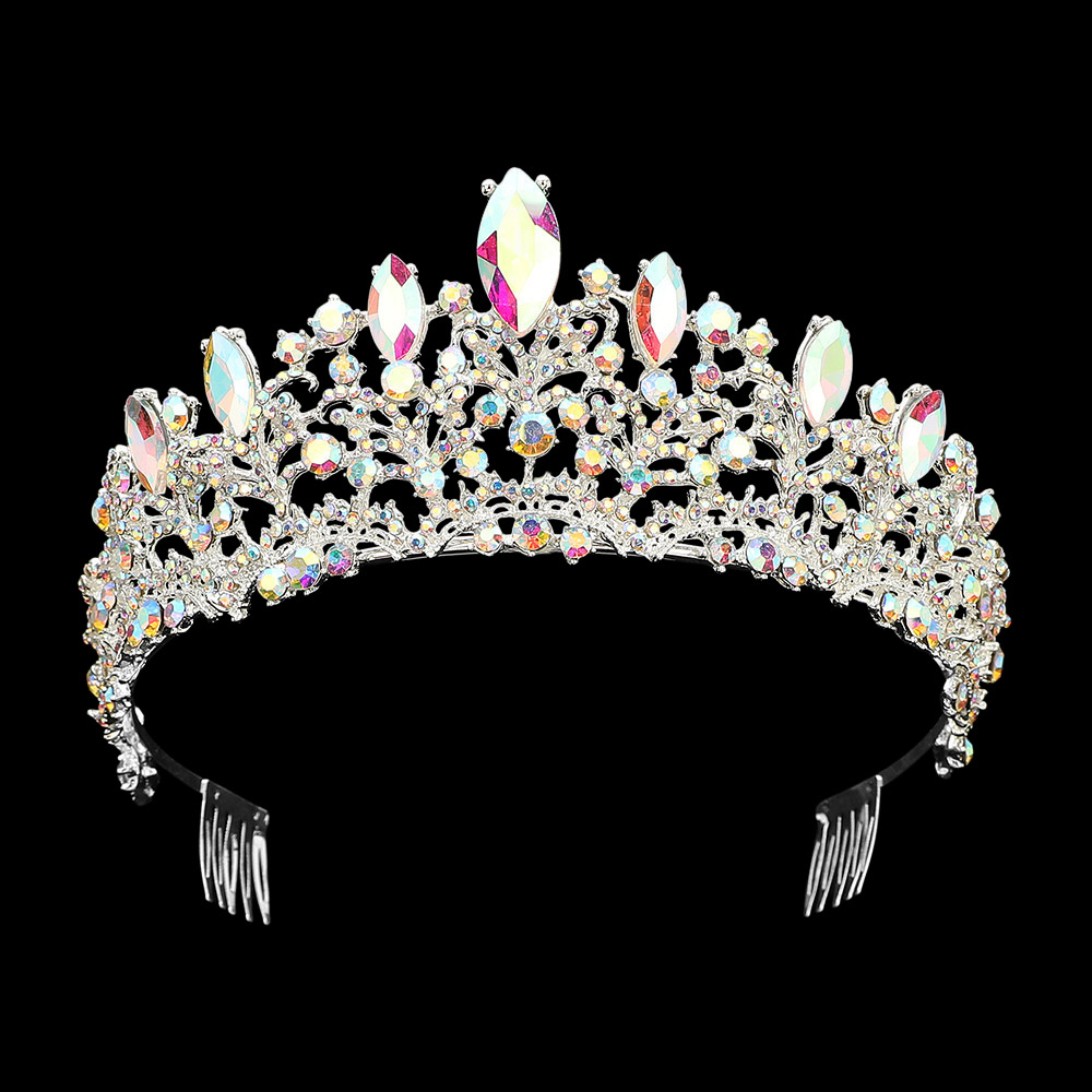 Details • Size : 2.5" H • This ornate tiara features a refined leaf-inspired design accented with brilliant crystal detailing for a radiant, regal finish. Ideal for formal events, weddings, or photoshoots, it adds a luxurious touch that enhances any special-occasion look with timeless elegance and sparkle.