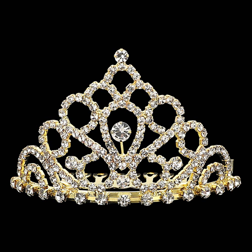 Round Stone Accent Rhinestone Paved Mini Princess Tiara