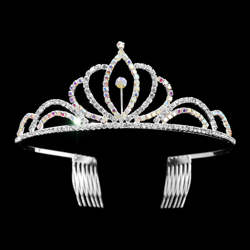 Round Stone Accented Rhinestone Paved Princess Tiara