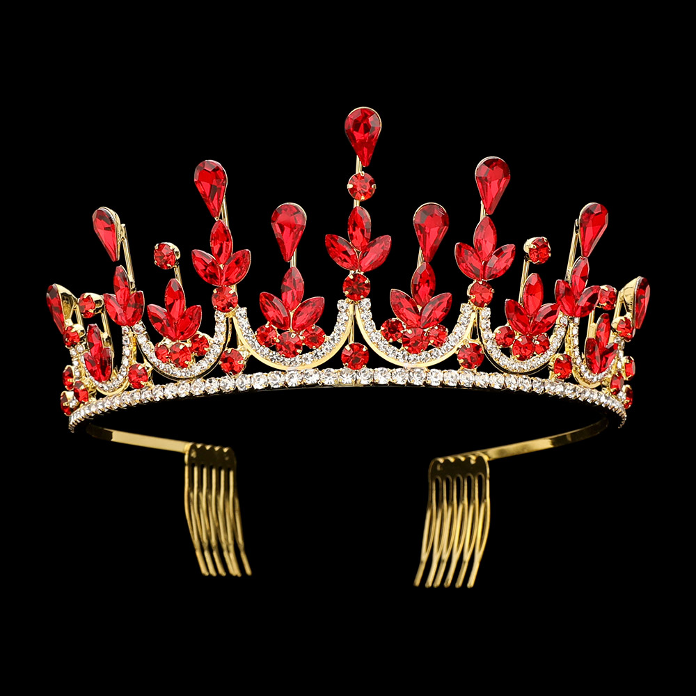 • Elegant crystal tiara featuring sparkling floral motifs, teardrop accents, and a graceful arched silhouette. Includes secure side combs for a comfortable, stable fit. Perfect for weddings, pageants, quinceañeras, proms, and formal events.