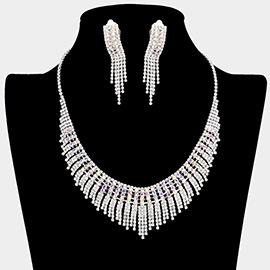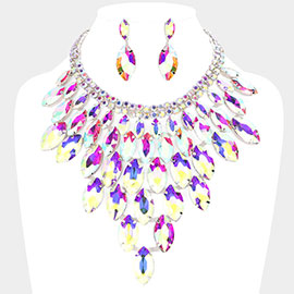 2Rows Elongated Teardrop Stone Cluster Stretch Evening Bracelet