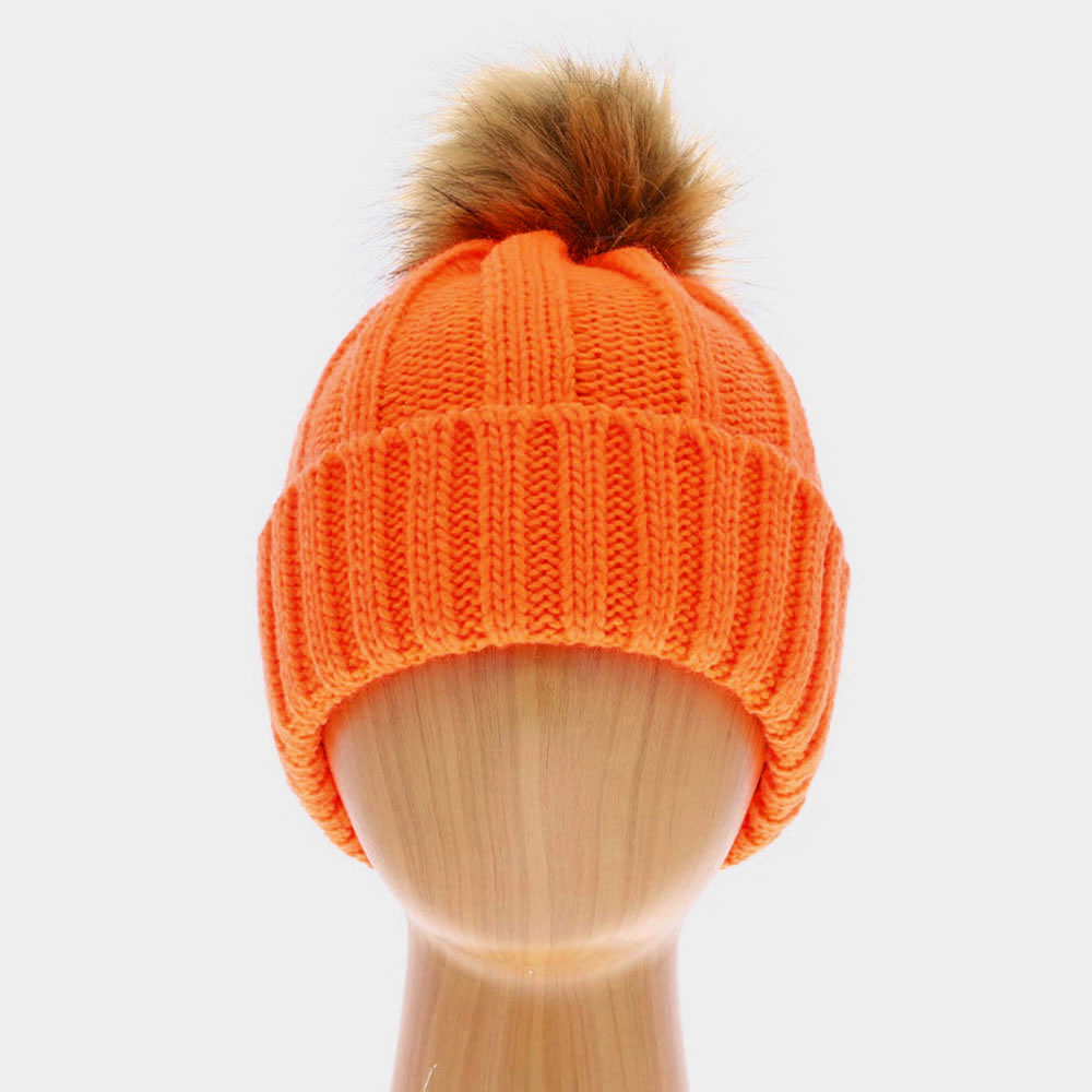 Chunky Knit Cuffed Pom Pom Single Layered Beanie Hat