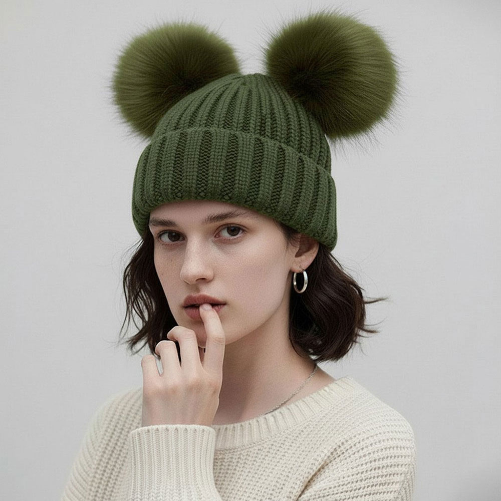 • Stay warm with this charming pom beanie featuring a soft, plush design and a fun, standout silhouette. Its cozy knit construction offers comfort for chilly days, while the double-pom detail adds a playful touch that elevates everyday cold-weather outfits effortlessly.