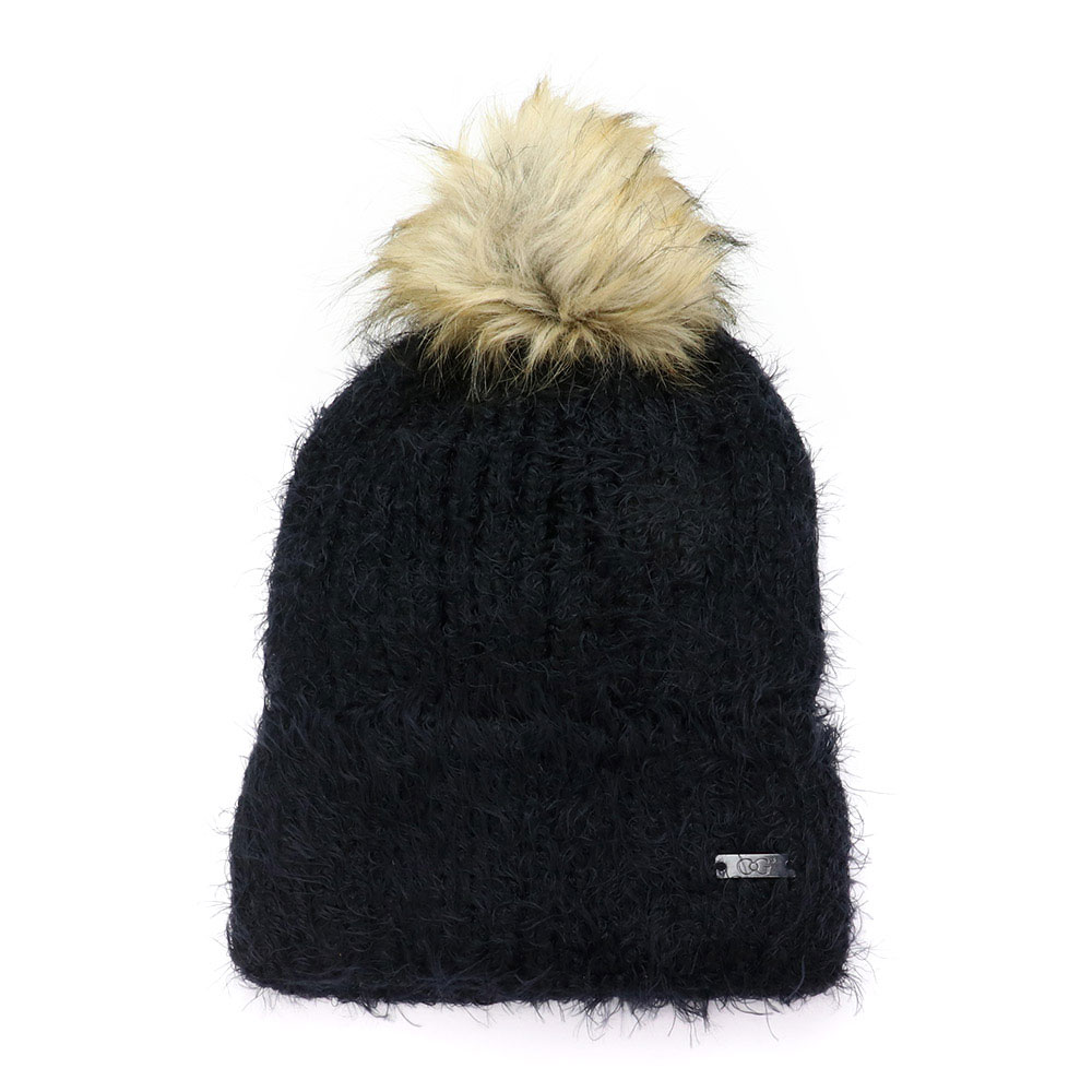 Faux Fur Pom Sparkly Ribbed Knit Winter Beanie Hat