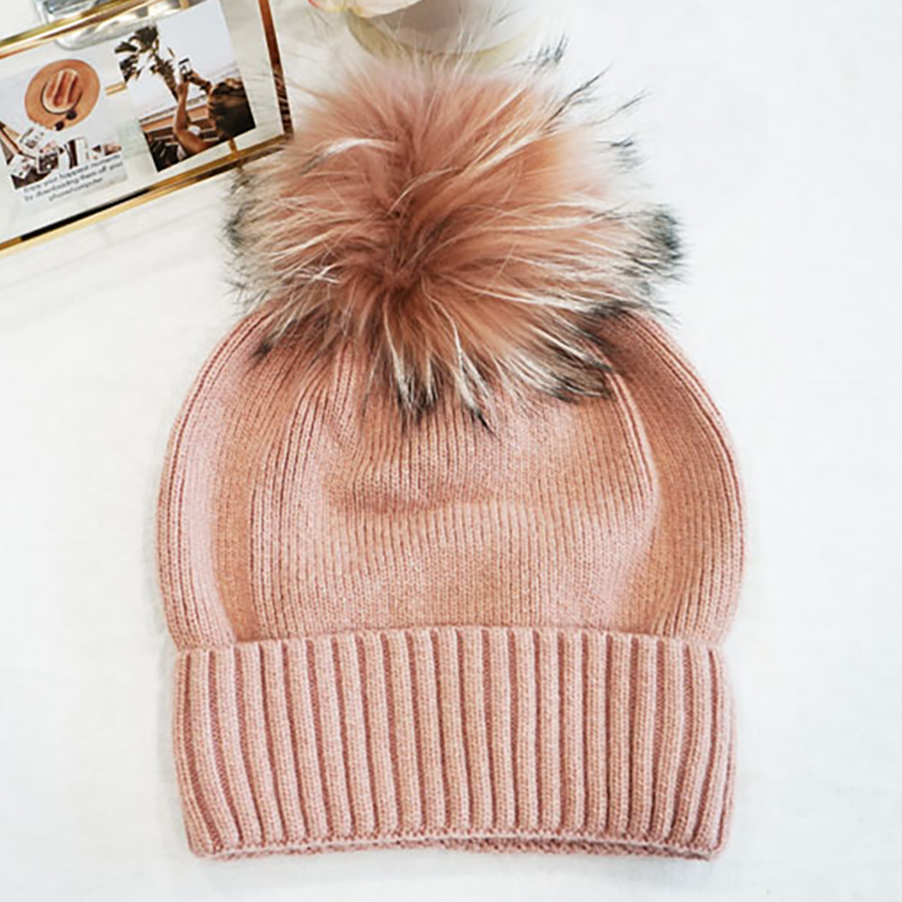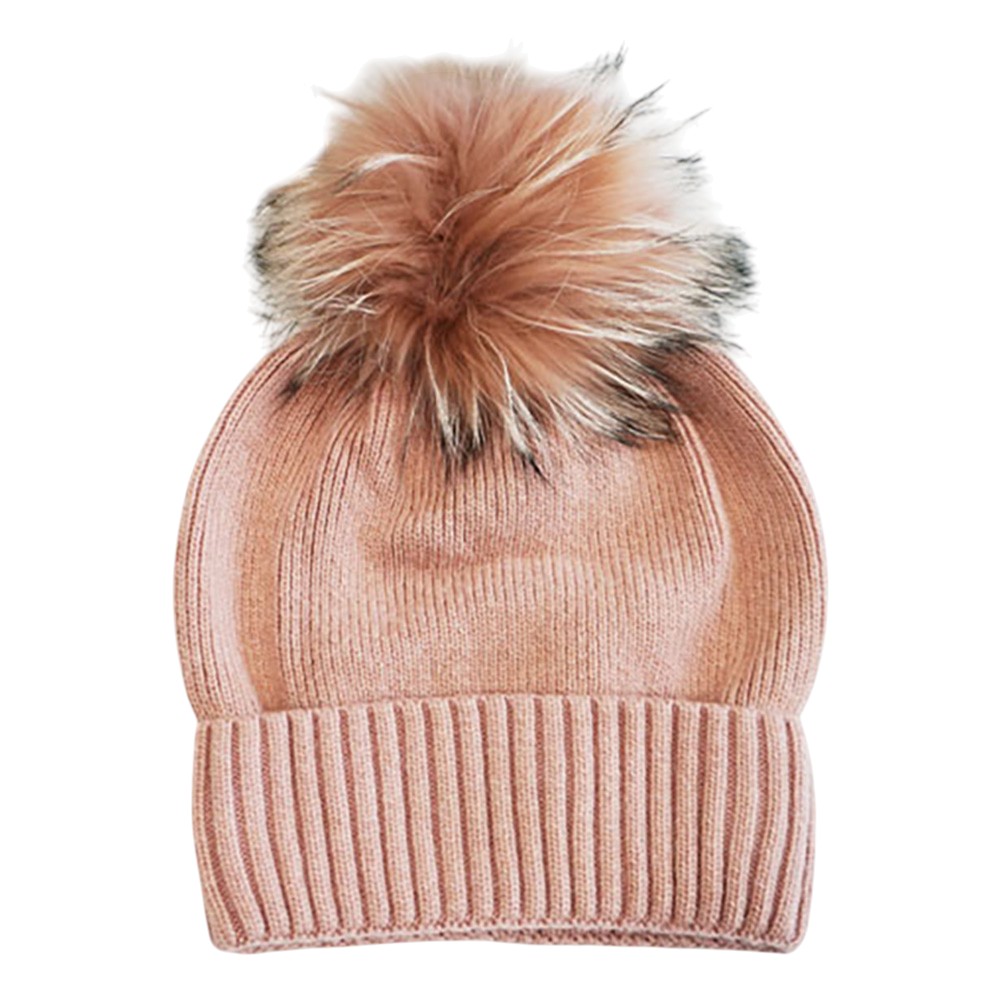 Detachable Fur Pom Pom Knit Winter Beanie Hat