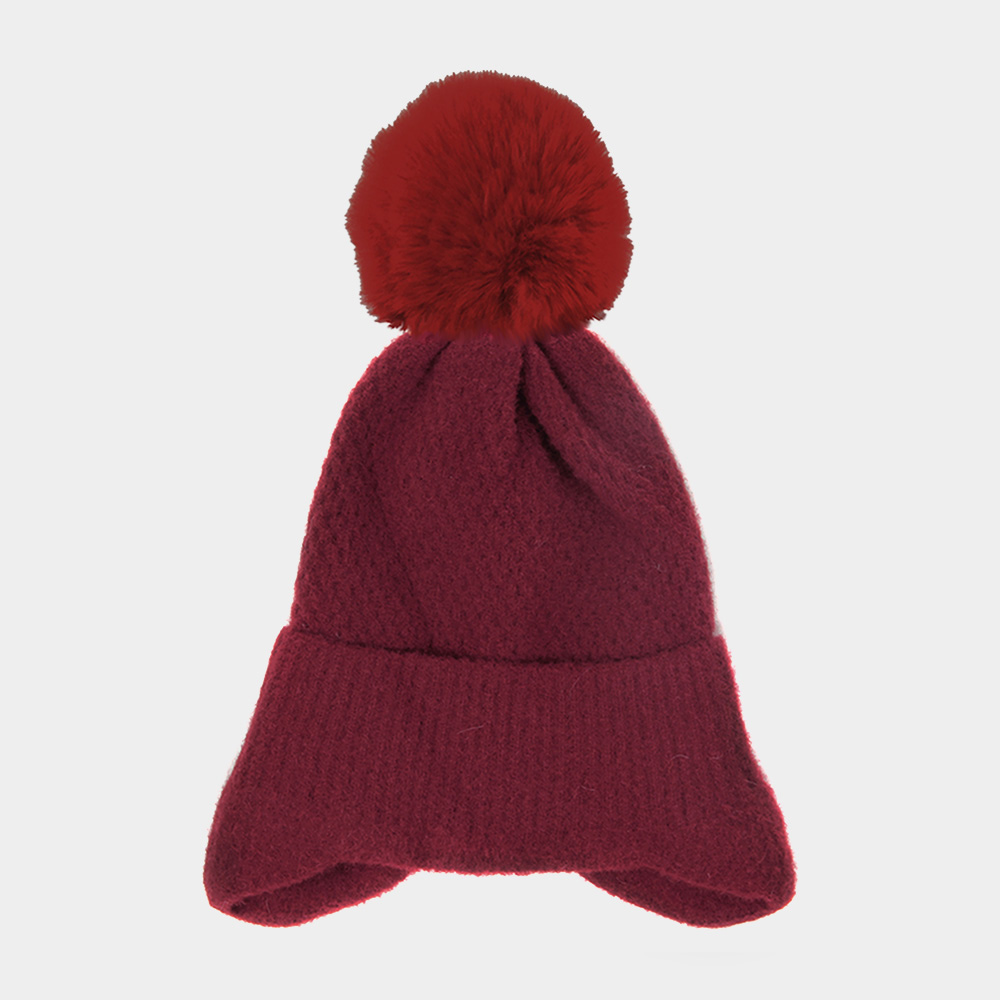 Solid Earflap Knit Pom Pom Beanie Hat