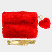 Genuine Leather Cowhide Calf Fur Patchwork Wristlet Pouch Clutch Bag