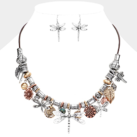 Teardrop Accented Stone Embellished Leaf Evening Necklace