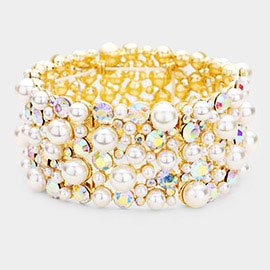 Fleur de Lis Football Theme Charms Metal Ball Stretch Bracelet